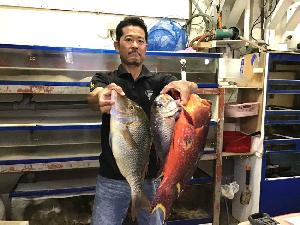 | 令和7年9月9日 与儀 太一さん/トカジャー 令和7年9月9日 釣人 与儀 太一 魚名 トカジャー 全長 53cm 重量 2,56kg 場所 粟国 ![]() |