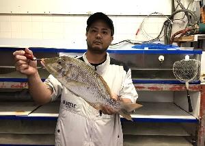 | 令和7年6月25日 崎枝 寿之さん/カースビー 釣人 崎枝 寿之 魚名 カースビー 全長 62,5cm 重量 3,56kg エサ ボラ ![]() |
