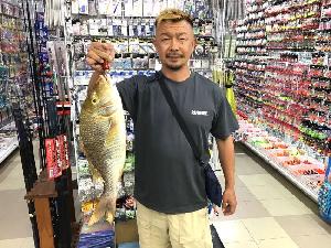 | 令和7年7月25日 酒井 直樹さん/タマン 釣人 酒井 直樹 魚名 タマン 全長 53cm 重量 1,81kg 場所 中城 ![]() |