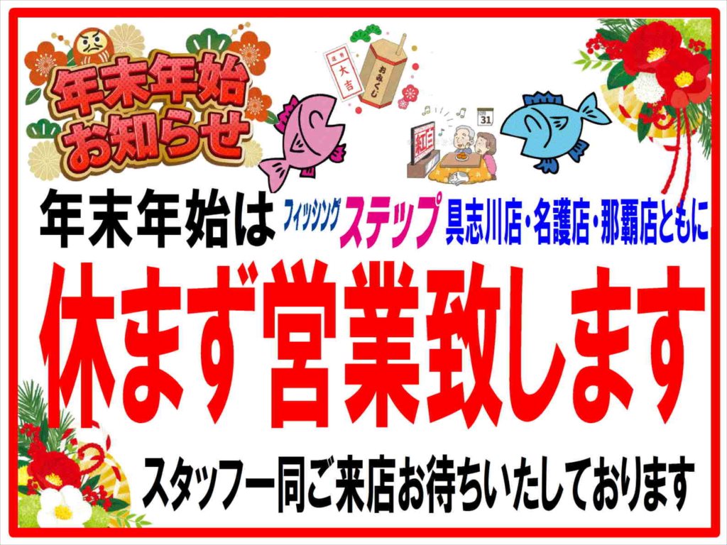 なお、1月1日は具志川店・名護店・那覇店ともに朝7時より開店しますので宜しくお願いします(*・∀・)/
