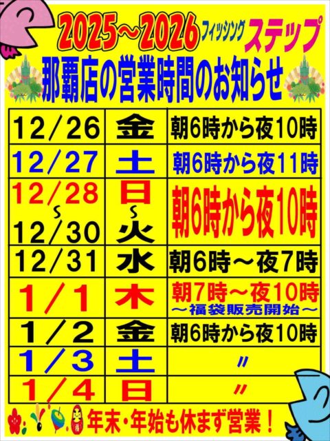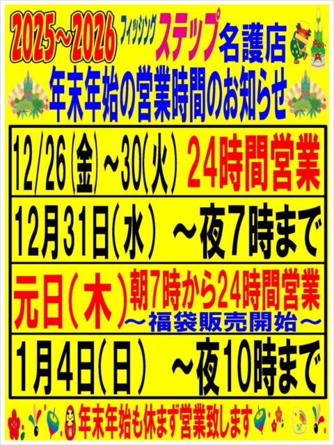 2025〜2026.年末年始の営業時間のお知らせ♪