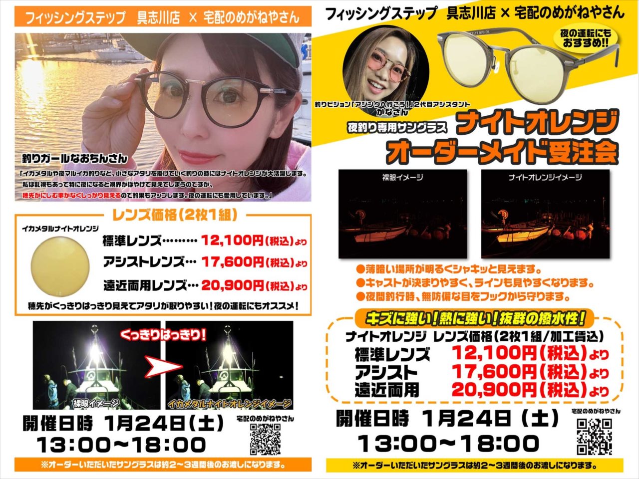 好評の‘夜釣り用レンズ ナイトオレンジ’に加え新色の