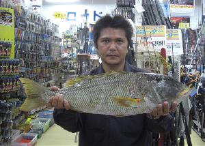 | H25.3/20 田端陽一さん/シルイチャー 2.22kg 名前:田端陽一さん(チームホチチ) 釣場:東海岸 魚名:シルイチャー 2.22kg |